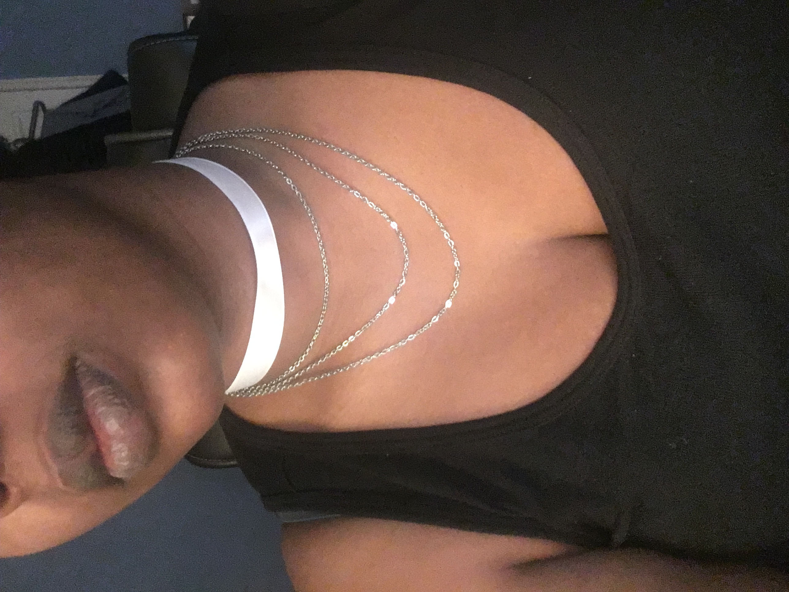 White Ribbon Choker with hanging silvertoned chains. Classy yet sexy.